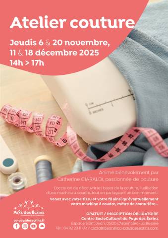Un atelier couture animé bénévolement par Catherine CIARALDI, une passionnée de couture.