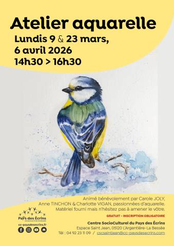 Un atelier animé bénévolement par Carole JOLY, Anne TINCHON & Charlotte VIGAN, passionnées d’aquarelle.Matériel fourni mais n’hésitez pas à amener le vôtre.