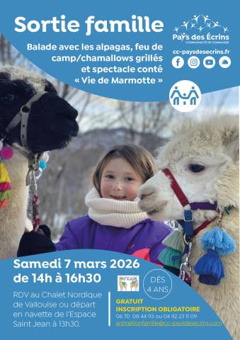 Une balade avec les Alpagas suivie d'un feu de camp agrémenté de chamallows grillés et un spectacle conté "Vie de Marmotte" pour clôturer l'après-midi.