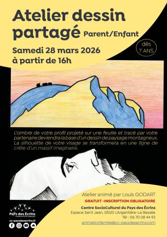 L’ombre de votre profil projeté sur une feuille et tracé par votre partenaire deviendra la base d’un dessin de paysage montagneux. La silhouette de votre visage se transformera en une ligne de crête d’un massif imaginaire.